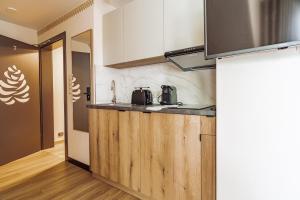 Cada apartamento tiene entrada privada y consta de uno o dos dormitorios, sala de estar y baño con ducha y secador. Las cocinas americanas están totalmente equipadas con placas eléctricas, frigorífico, utensilios de cocina, cafetera, hervidor eléctrico y zona comedor para disfrutar cómodamente las comidas. Entre las comodidades interiores destacan televisores pantalla plana, sofás o sofás cama, áreas para sentarse, planchas con tabla para planchar, armarios o roperos así como almohadas tanto plumón como sintéticas además de ropa de cama y toallas.
