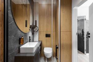 Cyrhla Apartamenty also features lift access to upper floors making it wheelchair accessible throughout. Additional amenities include an outdoor heated swimming pool available seasonally, game consoles for entertainment, on-site parking without extra charge, express check-in/check-out services and smoke detectors for safety.