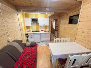 Accommodation units range from double to quadruple rooms, each featuring a wardrobe, electric kettle, balcony with mountain views, and private bathroom with shower facilities. Several chalets include fully equipped kitchens with stovetop, refrigerator, microwave and kitchenware alongside dining tables and barbecues. Rooms are fitted with heating, sofa beds or sofas in some cases, bedside sockets, flat-screen TVs and seating areas for added comfort.