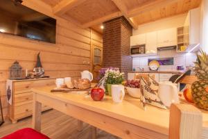 Domki Pod Jemiołą is a chalet complex located in Zakopane, featuring barbecue facilities and free WiFi. This peaceful property includes two rooms and offers views of the garden, city, and mountains. It is situated just 2.3 km from Tatra National Park and 3.3 km from Zakopane Aqua Park.