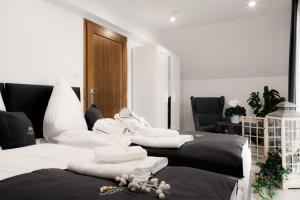 Each apartment features a fully equipped kitchen with modern appliances such as a stovetop, refrigerator, dishwasher, microwave, coffee machine and toaster. The units offer comfortable sleeping arrangements ranging from studios to spacious apartments with one or two bedrooms accommodating between two to four beds in total. Additional amenities include washing machines, seating areas with flat-screen TVs and PS4 game consoles, private bathrooms with showers or bathtubs plus bathrobes.