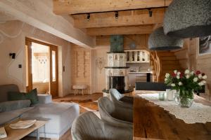 Guests benefit from services such as free on-site parking with private access via their own entrance. The chalet also boasts several outdoor spaces including a balcony with mountain views, garden-view terrace furnished with outdoor seating and an outdoor dining area perfect for enjoying meals alfresco.