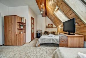 Obiekt znajduje się w odległości zaledwie 1,6 km od Zakopiańskiego Parku Wodnego i 2 km od Tatrzańskiego Parku Narodowego, zapewniając łatwy dostęp do popularnych atrakcji turystycznych. Goście mogą cieszyć się spokojną okolicą oraz widokami na ogród, tarasy i cichą ulicę.